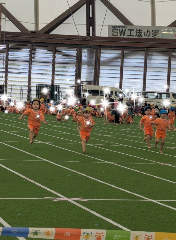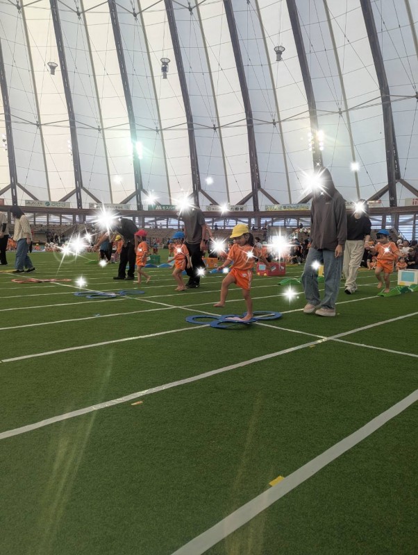 よいしょ!」と元気な声が響きました。親子競技では笑顔で手を繋ぎ、お家の方と一緒にゴールを目指す姿が微笑ましかったです。ひまわりコーラスの皆さんとの玉入れや「いっしょにGO」ではみんなで協力しながら楽しい時間を過ごしました。