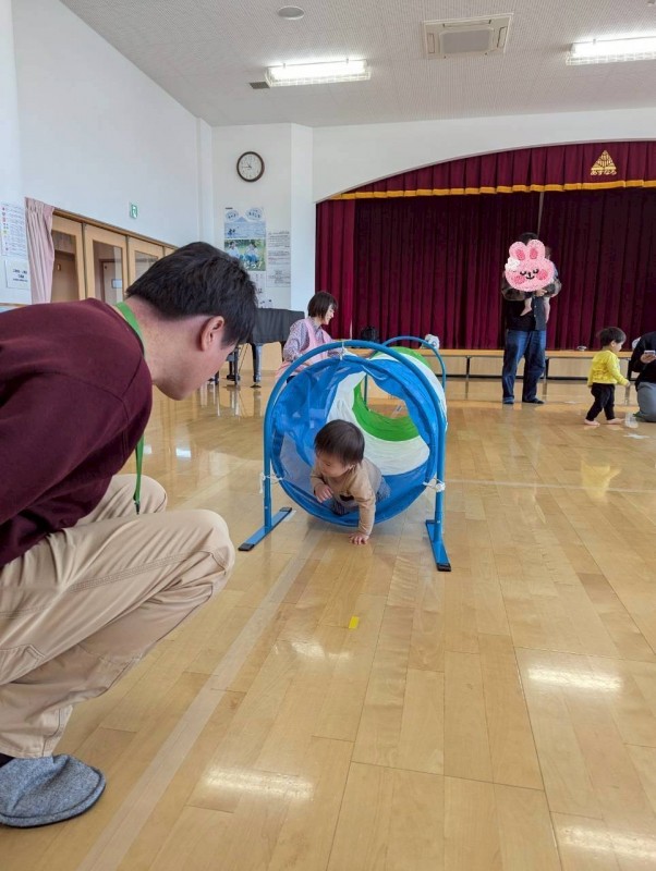 その後、運動遊びをしたりふれあい遊びをして楽しみました。おうちの方と一緒でとても嬉しそうなお子さんの姿が見れました。