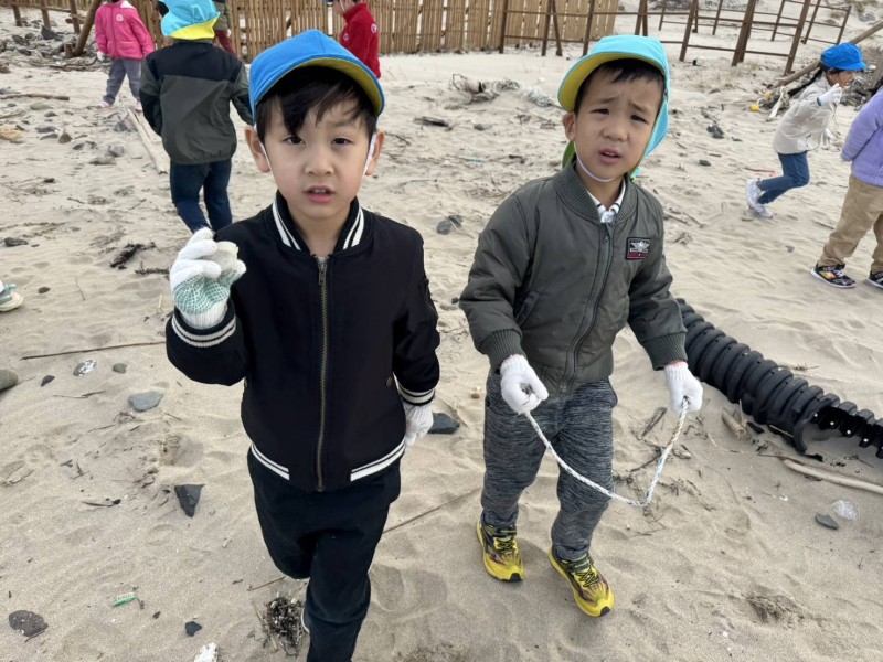 砂浜には、ペットボトル、ビニール、ロープなどさまざまなごみが落ちており、「海から流れてきたの?」「魚がたべてしまうね」と思い思いの言葉を交わしながら一生懸命ごみ拾いをする姿が見られました。