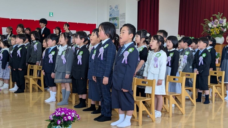 少し緊張した表情を見せながらも堂々と入場し、式では一人ひとりが名前を呼ばれて卒園証書を受け取りました。また、お別れのことばや歌を心を込めて歌い、会場は温かな雰囲気に包まれました。