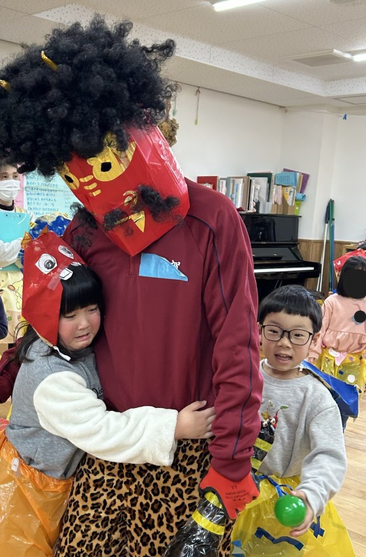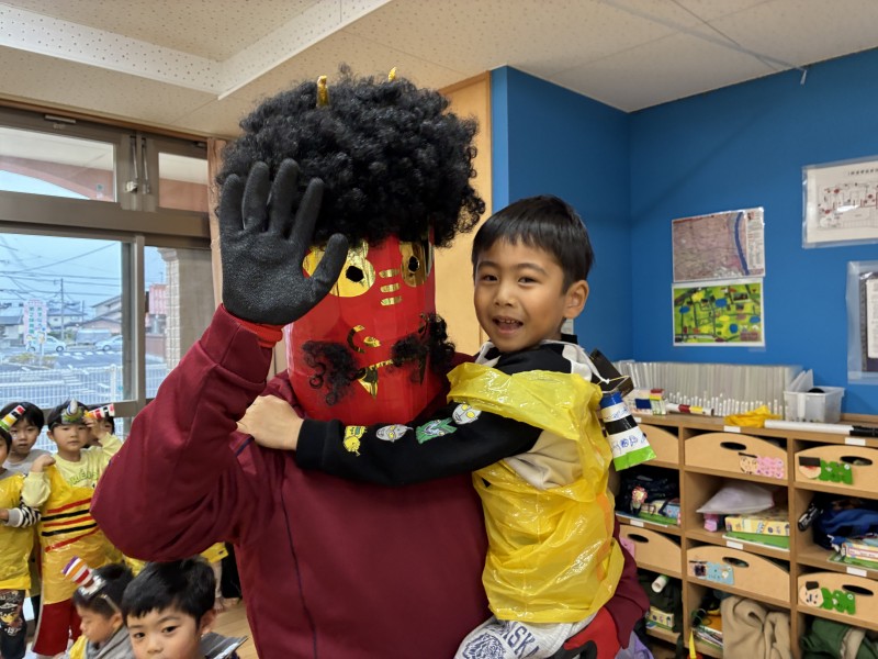 涙が出るお友だちもおられましたが、「おにはそと!ふくはうち!」と力強い掛け声とともにボールを投げられましたよ!