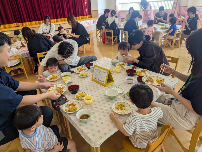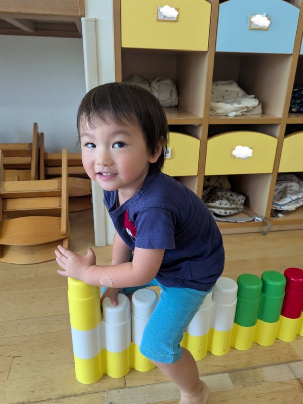 その後は、ホールで身体を動かして遊んだり、風船遊びをしたり、大型ブロックで車やお家を作って楽しみました。普段の遊びの様子を見て頂いたり、一緒にお食事を頂き笑顔の絶えない楽しいひと時を過ごすことができました。