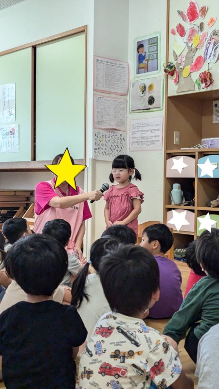 3歳児すみれ組さん、4歳児れんげ組さん、5歳児さくら組さんの10月のお誕生会がありました。誕生会ではお家の方に見守られ、少し恥ずかしそうなお友だちでしたが、はりきってインタビューに答えたり、歌のプレゼントでは明るく元気な歌声で歌うことができました。