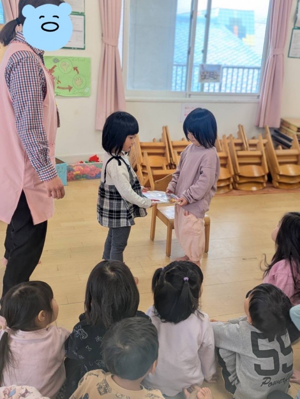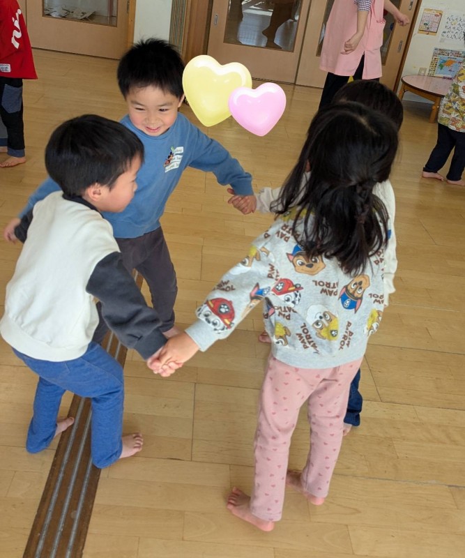 3歳児すみれさん、4歳児れんげ組さん、5歳児さくら組さんのお誕生会がありました。お家の方に見守られる中、堂々とインタビューに答えたり、みんなで歌を歌ってお祝いをしました。ハンカチ落とし、リズム遊び、カプラ等の遊びをお友だちと一緒に楽しみ、普段の遊びの様子を見ていただくことができました。