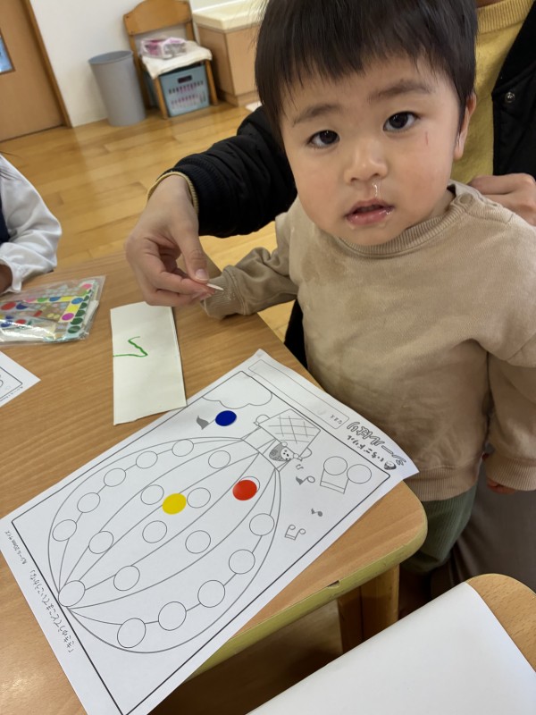 ひなまつり製作をしたり、絵本の部屋で遊んだり、お絵描きやシール貼りなどをして楽しみました。お友だち同士や親子でふれあう姿がたくさん見られましたよ。