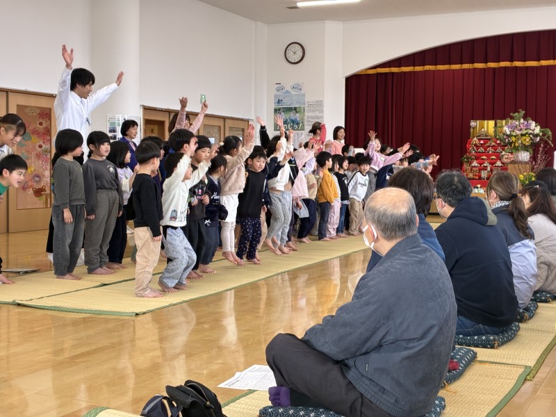 午後からは5歳児クラスの祖父母の皆さまをお招きし、ふれあい遊びやお茶会、歌の発表をしました。子どもたちは少し緊張しながらも、温かく見守られる中で立派な姿を見せてくれました。
