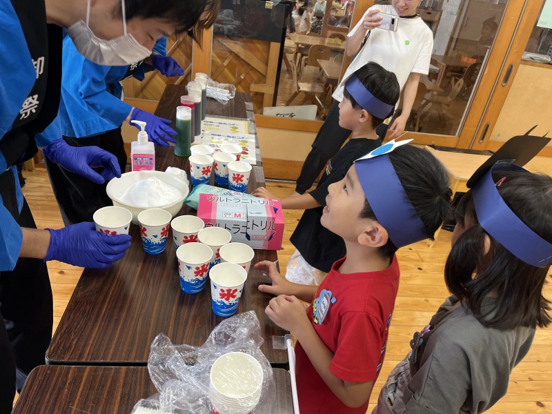 かき氷のお店やお化け屋敷・わにわにぱっくん・ヨーヨー釣りなどのコーナーがあり、各クラスごとに行い、楽しそうに・嬉しそうにする子どもたちでした☆